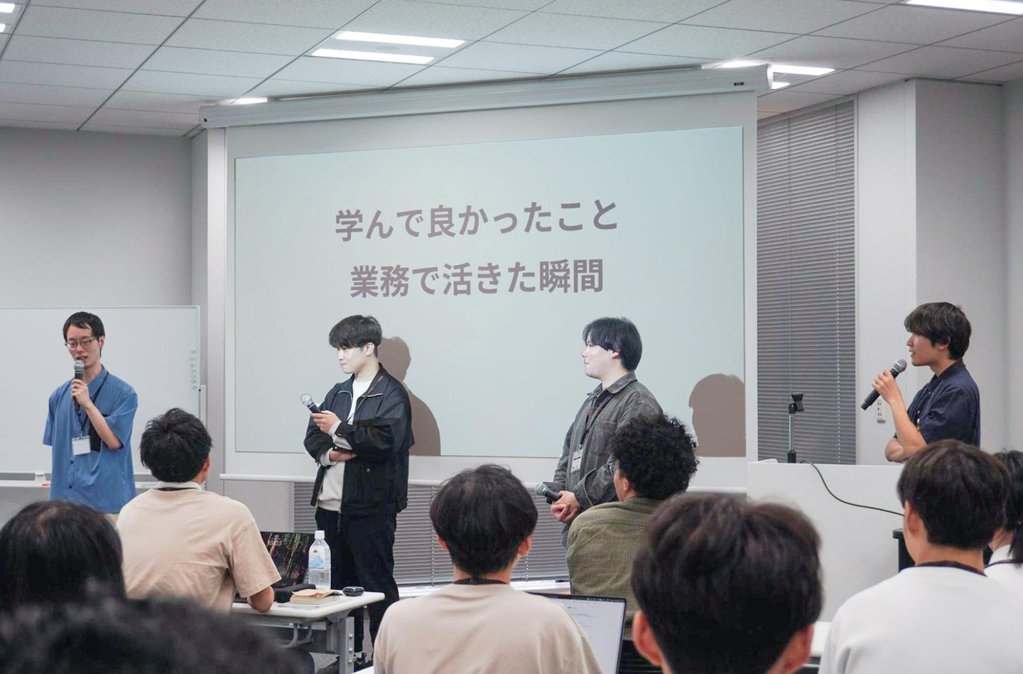 「AWSはクラウドエンジニアだけが学ぶものではない。AWS環境上でのアプリケーション開発や、マネージドサービスを活用したアプリケーション開発が一般的であり、職種問わずAWSスキルが必要である。是非積極的にチャレンジや学びを深めてほしい」 「AWS認定資格は、試験終了後すぐに結果が判明するところが良い。仮に不合格のとなっても、2週間を空けて再受験が可能なので、どんどん挑戦をしてもらいたい」 「対応する案件が変わっても、会社が変わったとしても、AWSの知識・経験は必ず役に立つ。皆さんも必ず将来AWSの知識が役にたつと信じて興味をもって、学び続けてほしい」 といった新入社員の背中を押すような先輩社員からのメッセージを受けて、会場の盛り上がりも最高潮に!