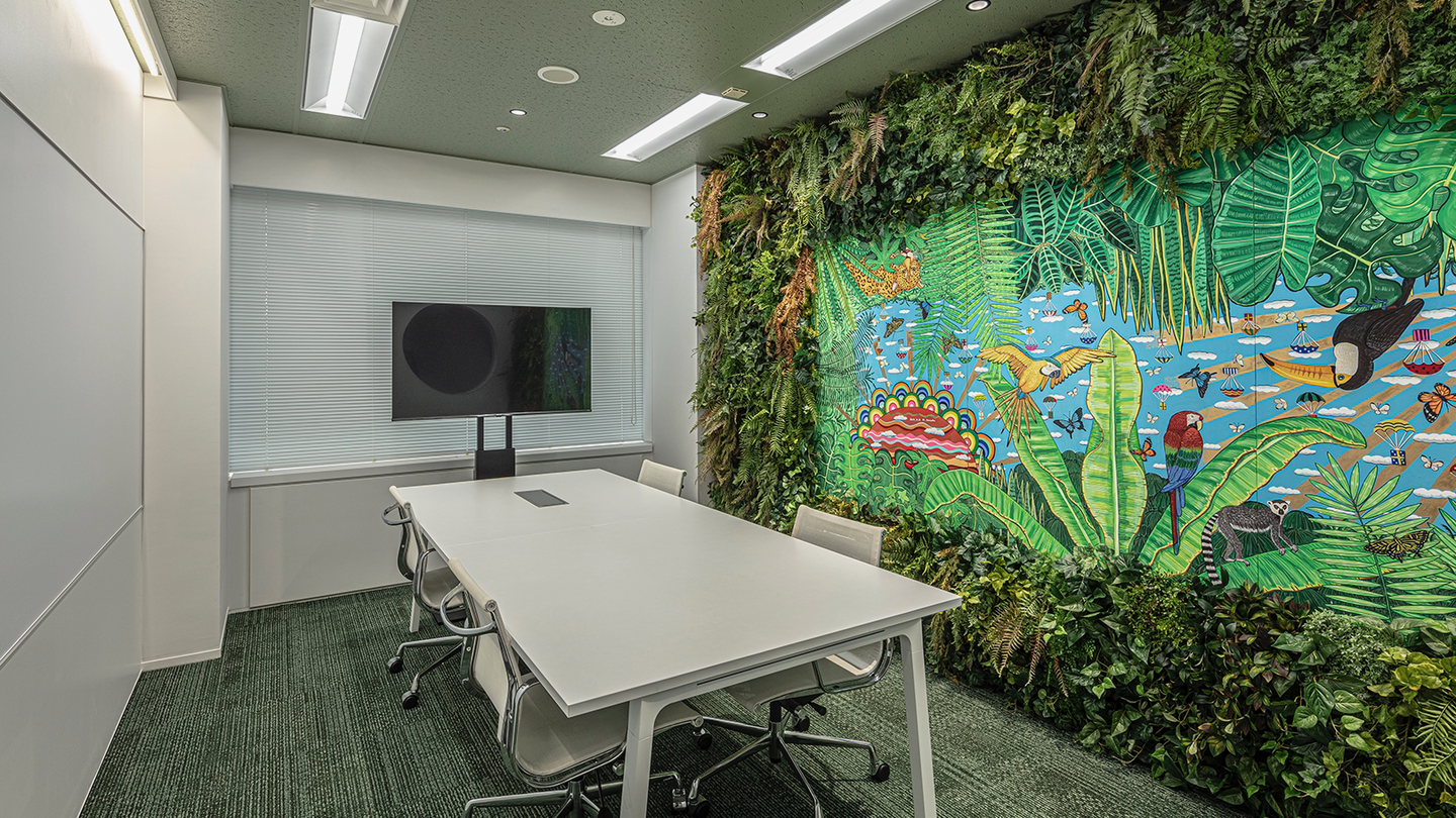お客様への愛、ユーザーへの愛、仲間への愛。あらゆる愛を表現する手法として、アシロでは多様性にあふれる自然をモチーフとした会議室をデザインしました。