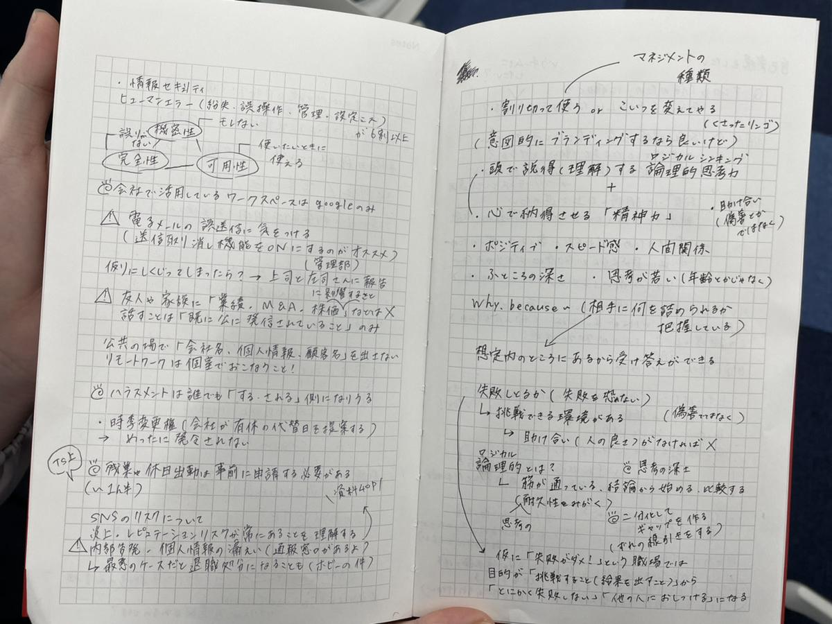 ▲派生メディア事業部の田口さん さっそく入社式後の研修から手帳を使ってくれています