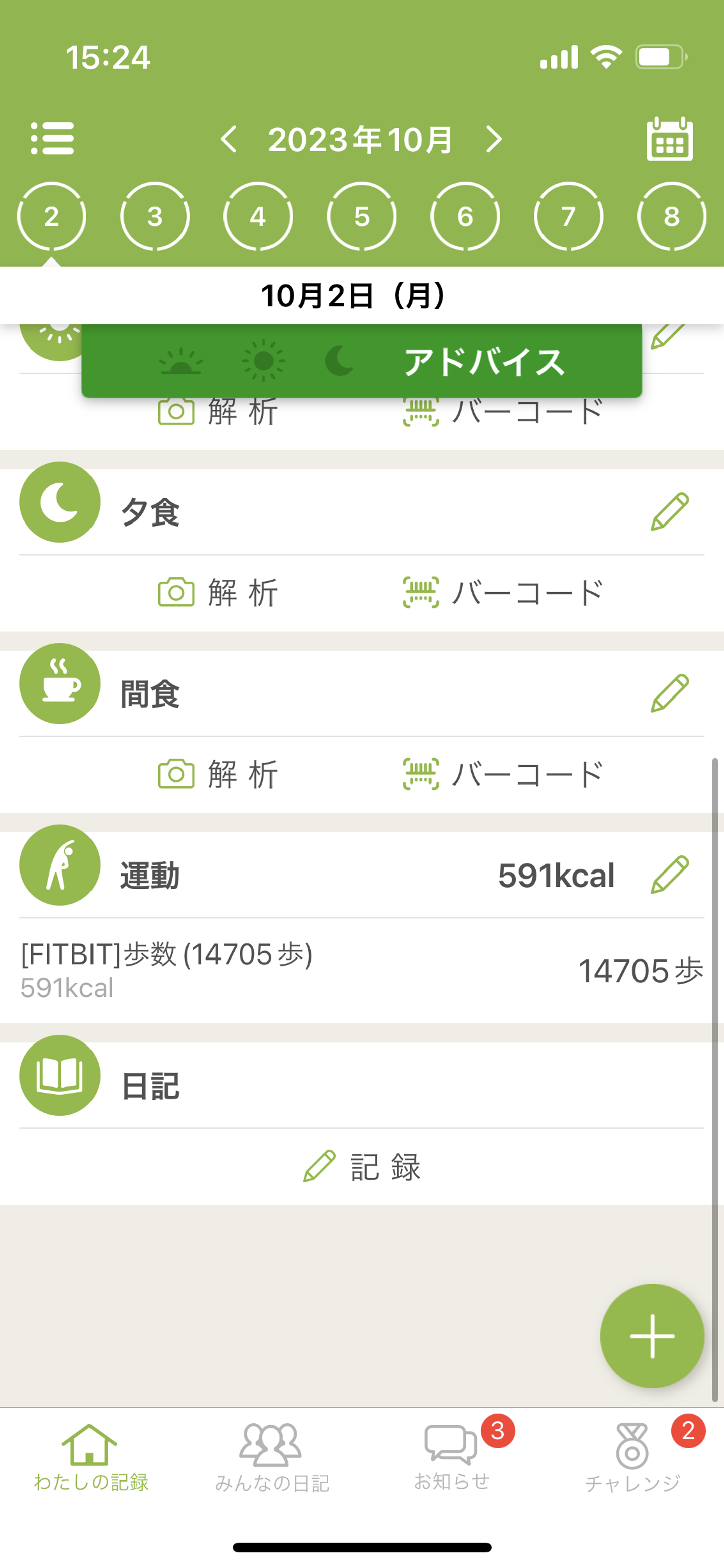 また、下の画像のようにFitbitをあすけんに連携しました。スマホを持ち歩く必要がないので便利ですね。こまめに歩数をチェックする癖がつきました。