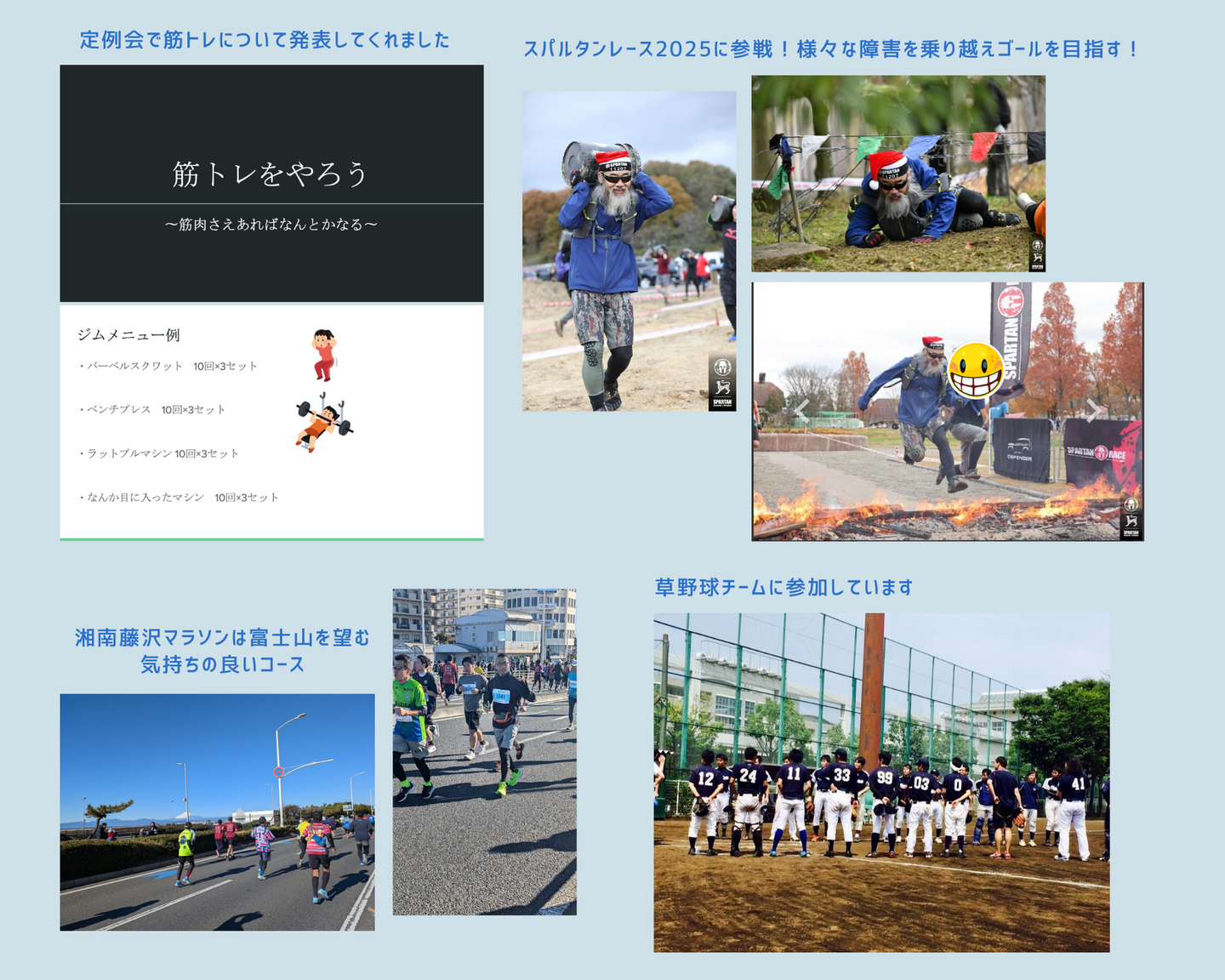 最近では個人競技だけではなく草野球チームにも所属し月に1回程度は練習試合に参加しています。ポジションはキャッチャーです!