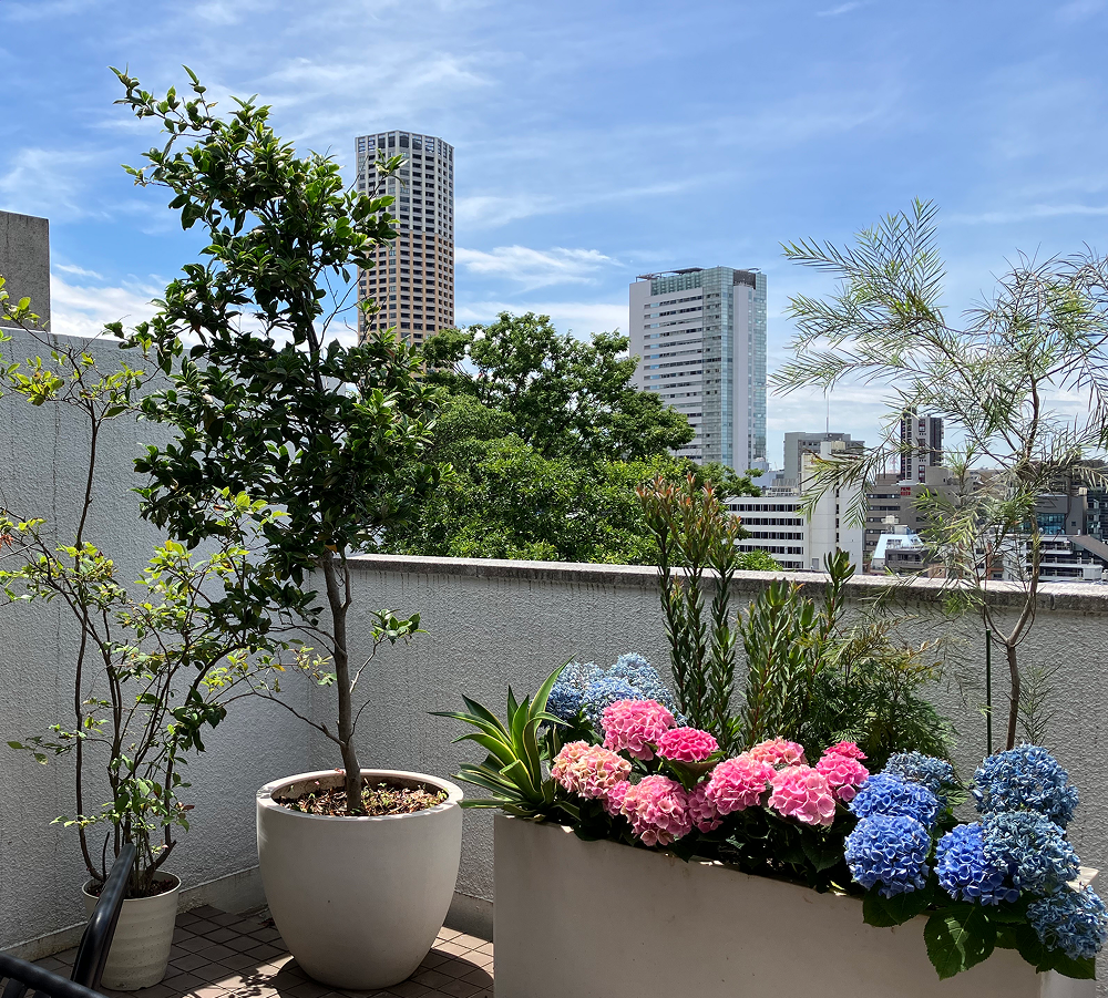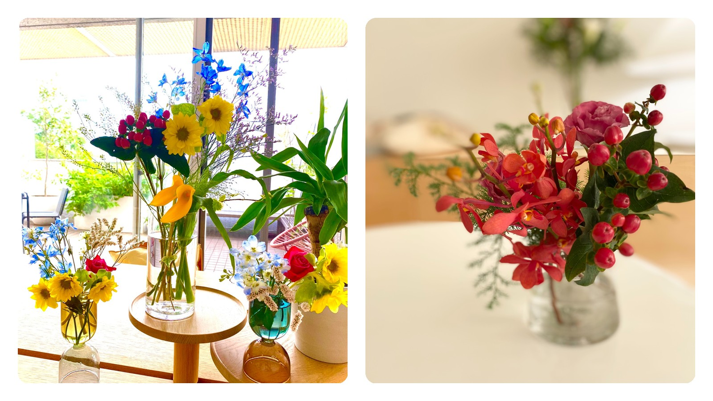 出社の日は花の香りとコーヒーの湯気、そしてテラスの風の中で、“人と混ざる”時間を意識的につくっています。