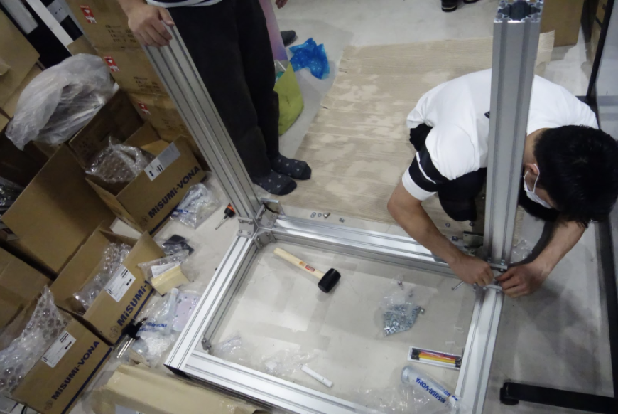 自分たちでひとつずつ組み立てていきます。(私服勤務なので動きやすさ◎!)
