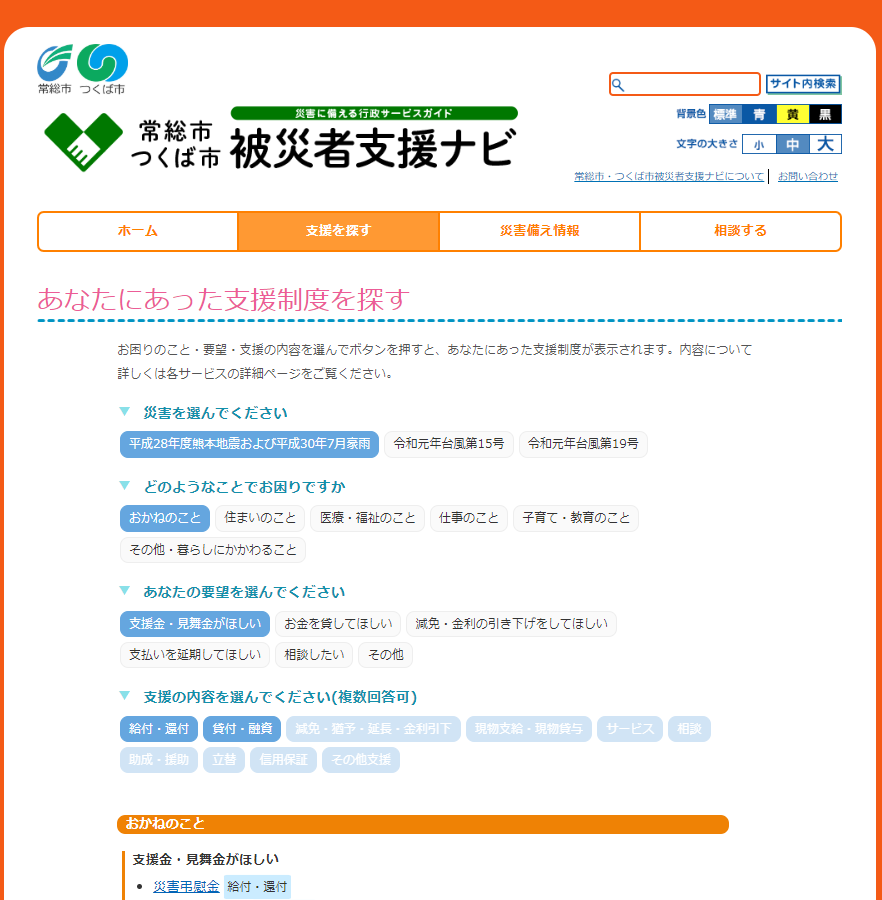 常総市・つくば市 被災者支援ナビ│「被災者が使える行政サービス」のポータルサイト