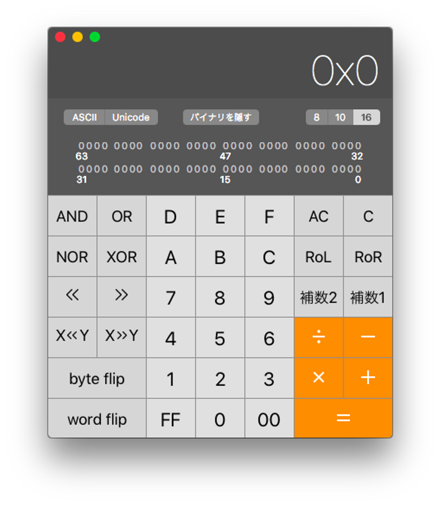 しかし、PCは便利なものでプログラマ計算機なるものが搭載されています!見たことのないボタンがいっぱい!!!!