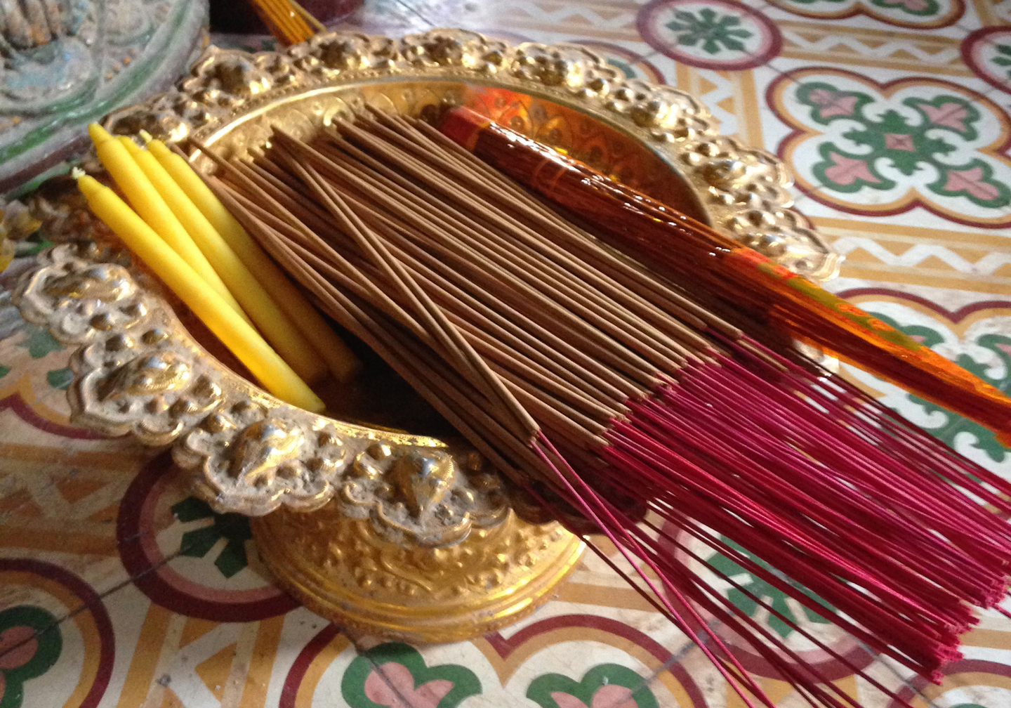 お線香が赤、ロウソクが黄色で可愛い。