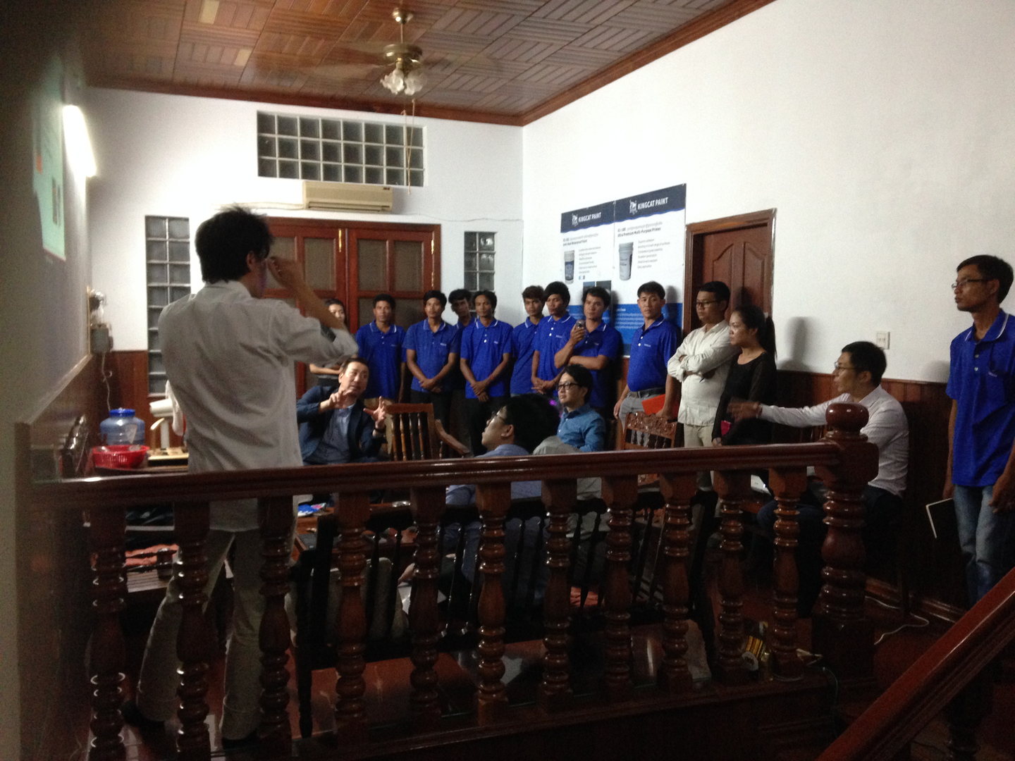 カンボジアは電気料金が高く暑い国なので、太陽を発電に変える太陽光パネルのビジネスを持ち込もう!と、新しく立つビルに太陽光パネルを付けられないか台湾人の建築デザイナーの方と打ち合わせの様子です。