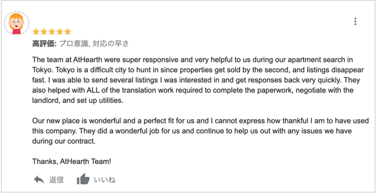 希望通りの住居を得るだけの所得があるのに、ただ”外国人だから”というだけで、今まで住みたい家に住むことができなかった方々から評価をいただけています。