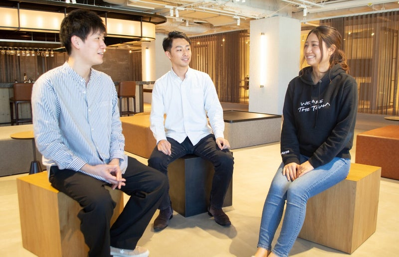 @hosakak :穂坂 賢司(写真左)。1988年生まれ、神奈川県出身。大手SIer、フリーランス、起業(共同創業)などを経て2019年に中途入社。現在は Green でエンジニアを担当。 @muttu_623 :佐藤 夢積(写真中央)。1996年生まれ、岩手県出身。東北大学理学部卒業後、2019年4月に新卒入社。入社後一貫して Yenta の Android アプリエンジニアを担当。