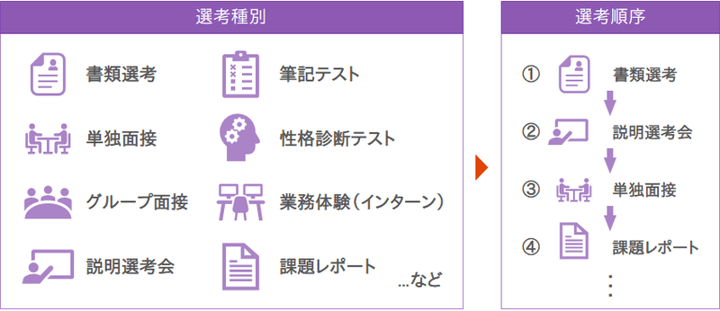 ■②選考ステップ:「種別」(③選考ツール)と「順序」を考える