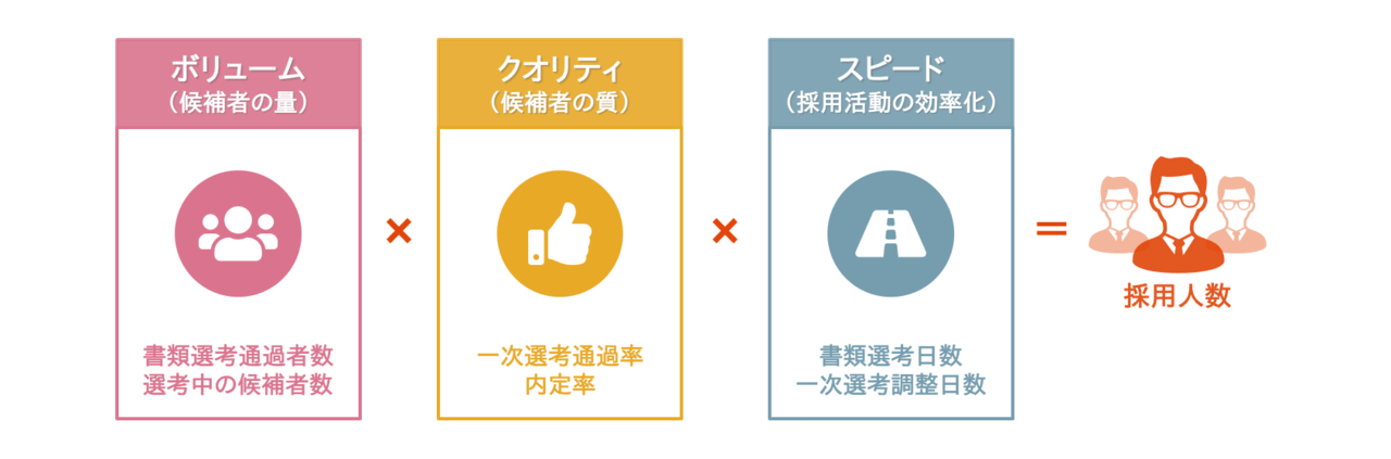 まず大前提として「採用目標人数」と「目標KPI」は異なります。目標KPIは「決まった期限内に、目標人数を採用するための数値的な指標」となります。