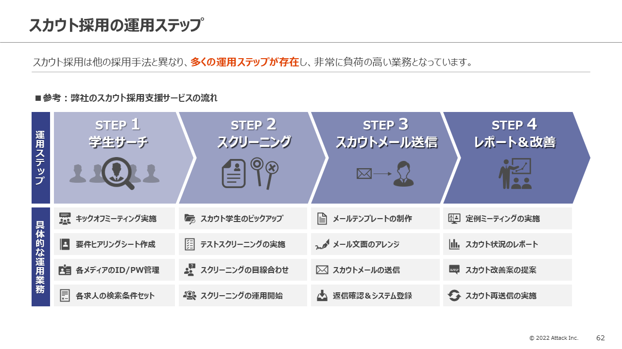 弊社でのスカウト採用の運用ステップをご紹介しました。