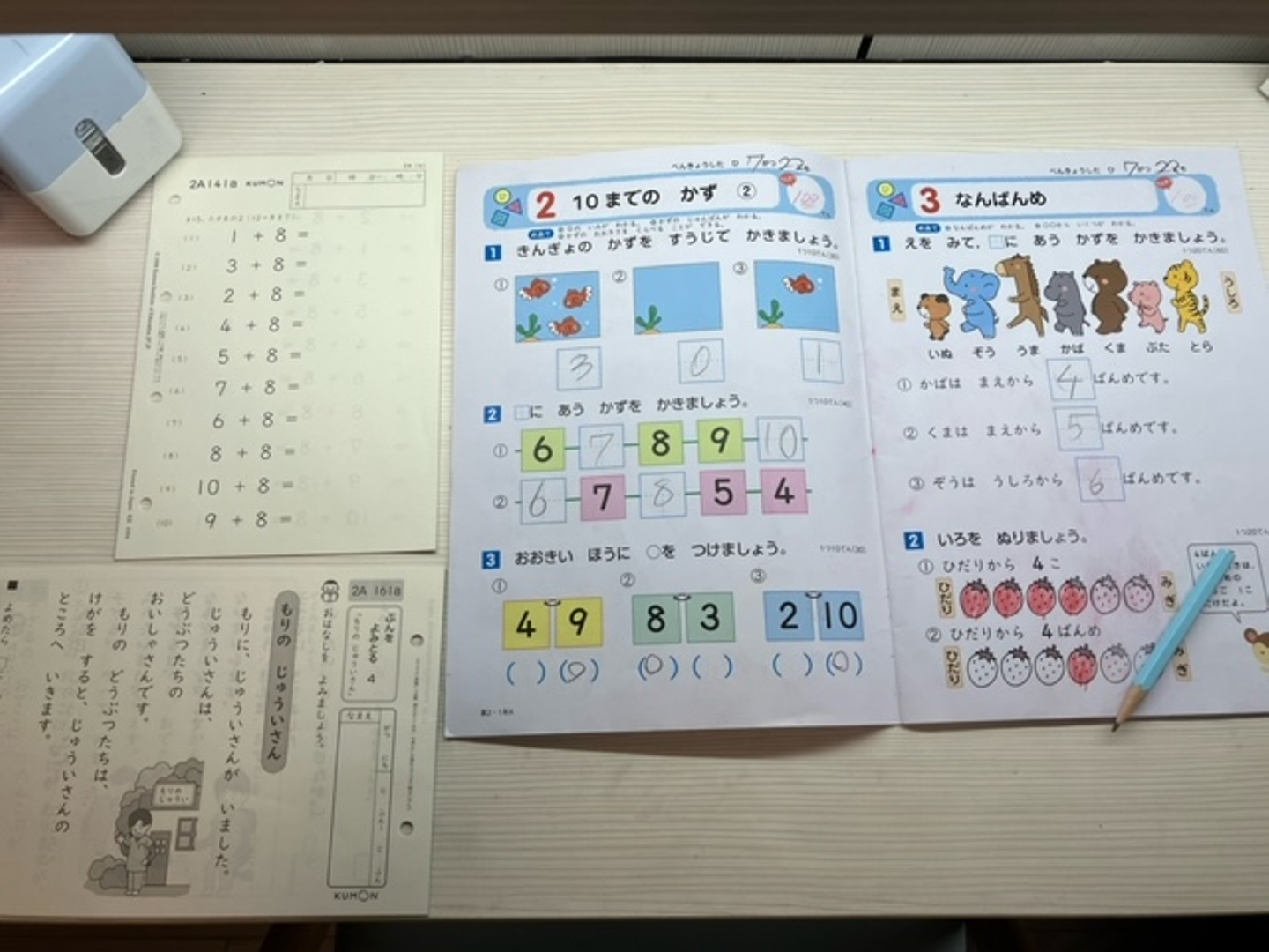 ▲学校の宿題や習い事の宿題。一人でやらせるとなかなか終わりません…泣(行光)