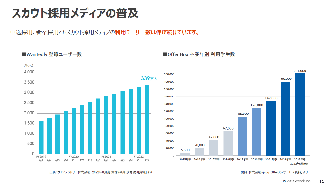 実際、ダイレクトスカウトメディアのユーザー数は伸び続けています。スキルのある優秀な候補者ほど、エージェントを通さずに直接企業とやり取りをしようとする傾向が強まっています。