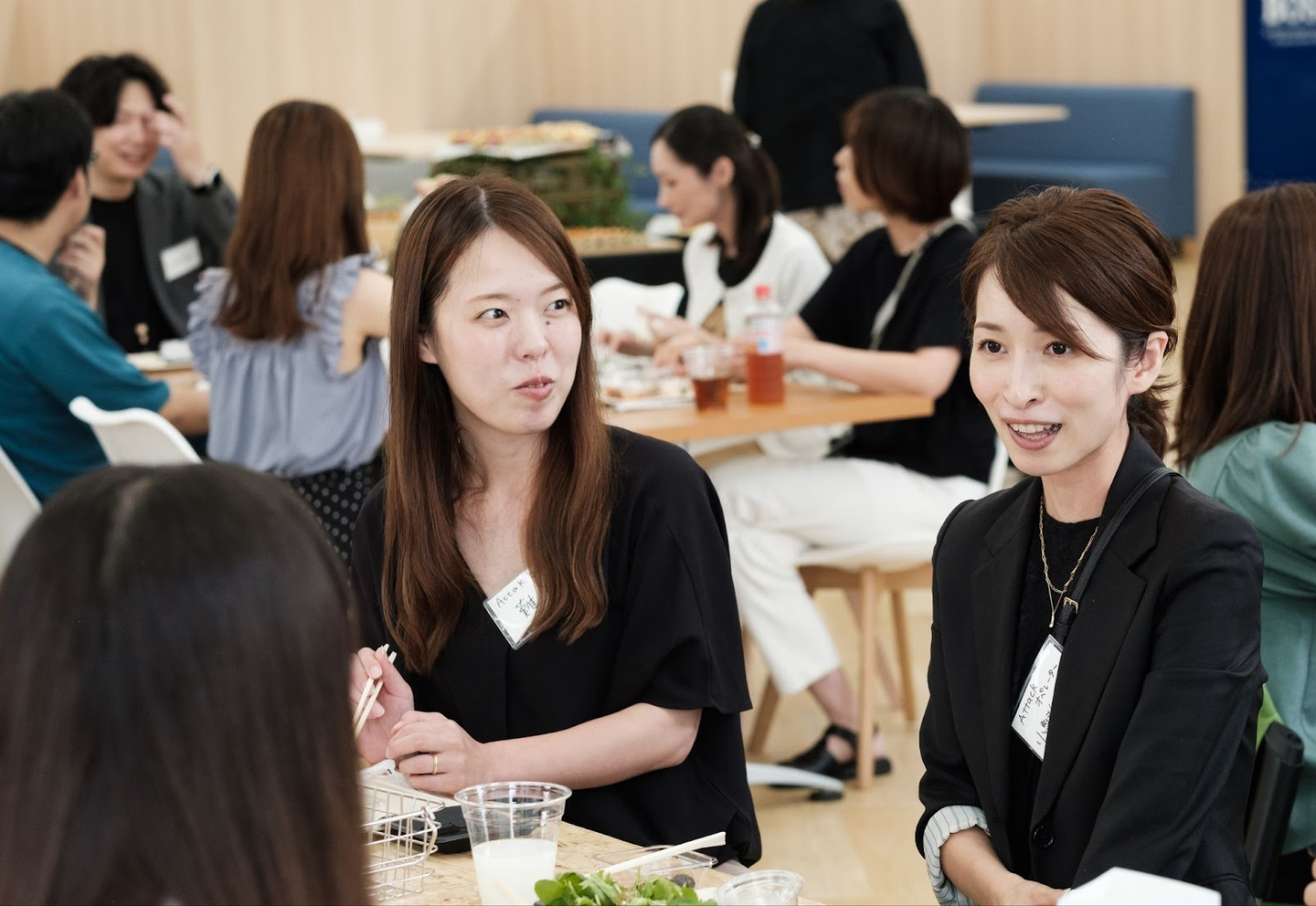 その後はくじ引きで一緒のテーブルになったPAC社と弊社のメンバー同士、ケータリングを楽しみながらの雑談タイム。仕事からプライベートの話題まで、さまざまな話題で盛り上がりました。