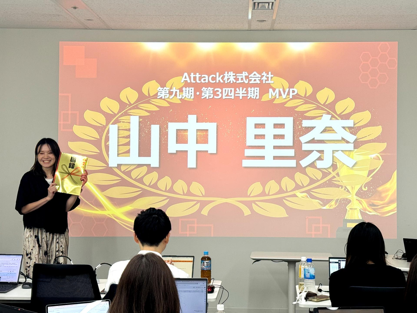 そして今期の映えあるMVPには、社内業務改善プロジェクトを牽引しコーディネーターのリーダーに昇格した山中が三度目の受賞、準MVPには業務範囲を超えてチームワークに貢献したオペレーター小鮒が受賞しました!