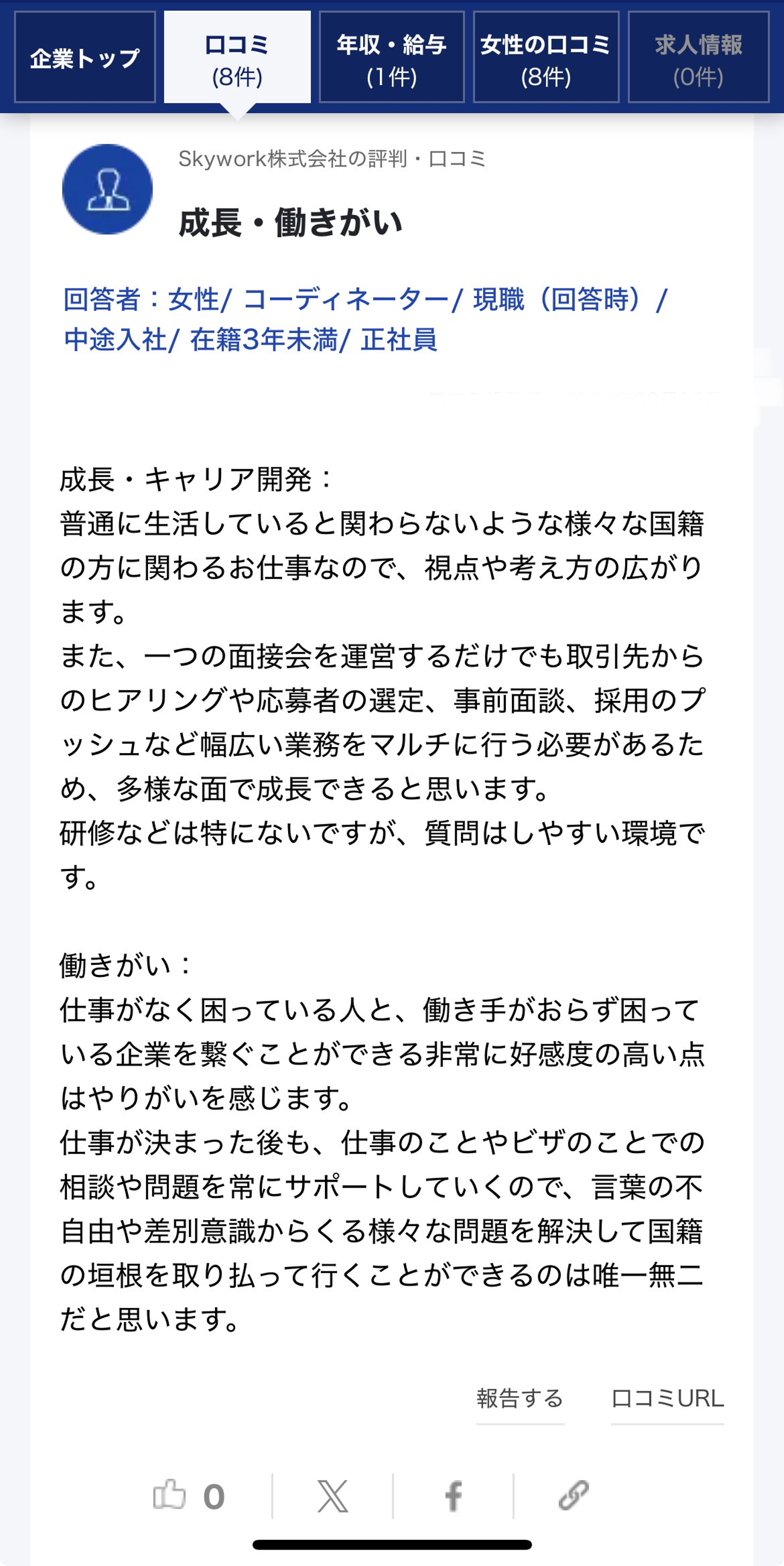 Skywork株式会社Followhttp://skywork.group東京都FollowHomeAbout usMembersStoriesJob postings 働きやすいのか?Skywork ゆう 加藤 Other on 2025-11-23 Photo by Aditya Saxena on Unsplash 働きやすいのか、Skyworkですって。参考になれば Invitation from Skywork株式会社 If this story triggered your interest, have a chat with the team? Want to Visit Skywork株式会社's job postings 本社事務(就労ビザ支援など) キャリアコンサルタント 採用コンサルティング 働きやすいのか?Skywork ゆう 加藤 Skywork株式会社 / Other Skywork口コミ Share