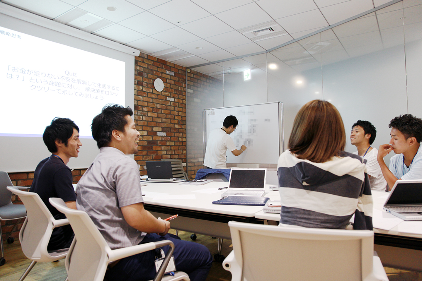 社内メンバーからの依頼で開催に至った「社内コンサル塾」。少人数で和やかなムードのなか、思考法を学びました!