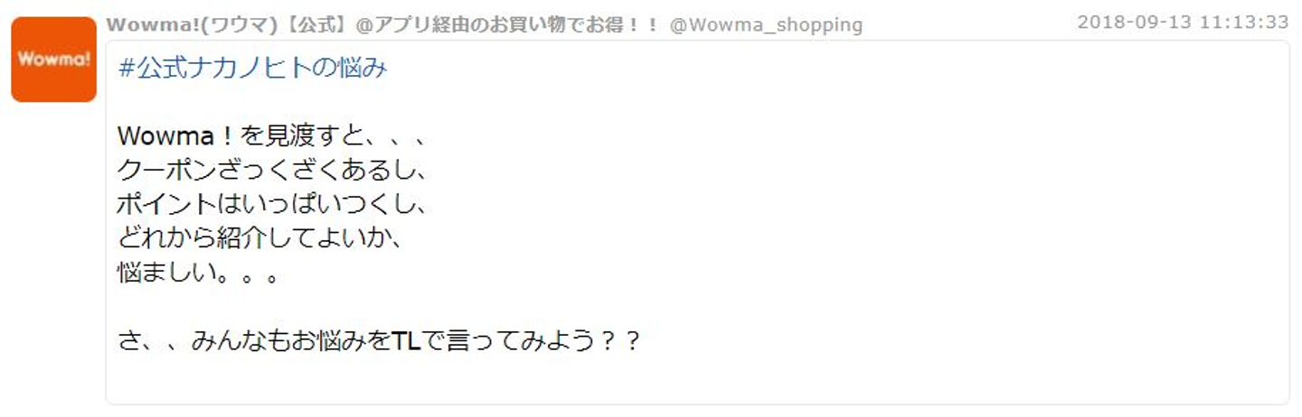 弊社の運営する総合ショッピングモール「Wowma!」のTwitterアカウントが、