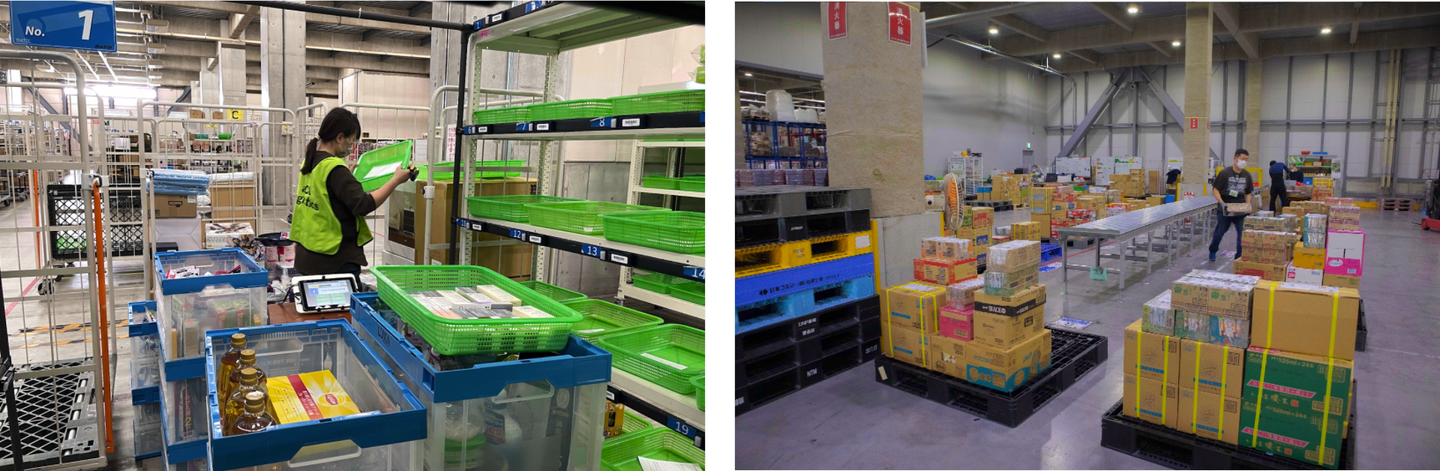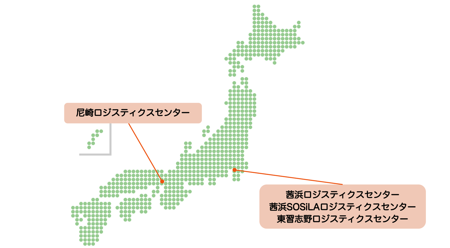 東日本のメイン拠点として、家電・食品・コスメ・生活雑貨・日用品・アパレル・高度管理医療機器など幅広い商材を扱う。 - 尼崎ロジスティクスセンター