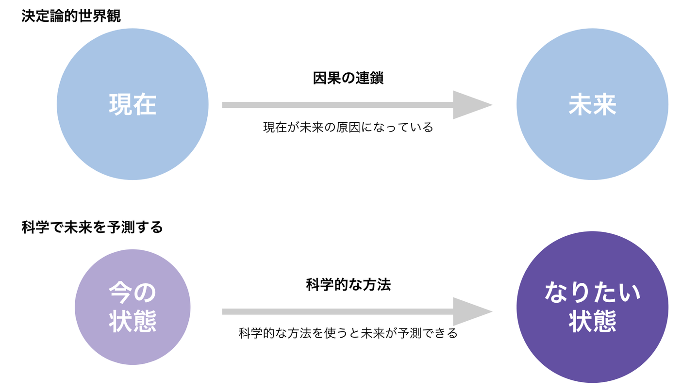 僕は決定論的世界観を支持しています。決定論的世界観とは、粗く言うと全ての未来の出来事には原因があり因果の連鎖で将来が決まっている、言い換えると、全ての将来は今現時点で既に決まっているのだとする世界の見方です。もちろんもしかしたら原因を必要としない粒子の運動があって未来の因果になることもあるかもしれないので、単純化された極端な見方と言えますが、大筋でそのように見ています。人間が世界の将来を予測する方法としては、科学があります。