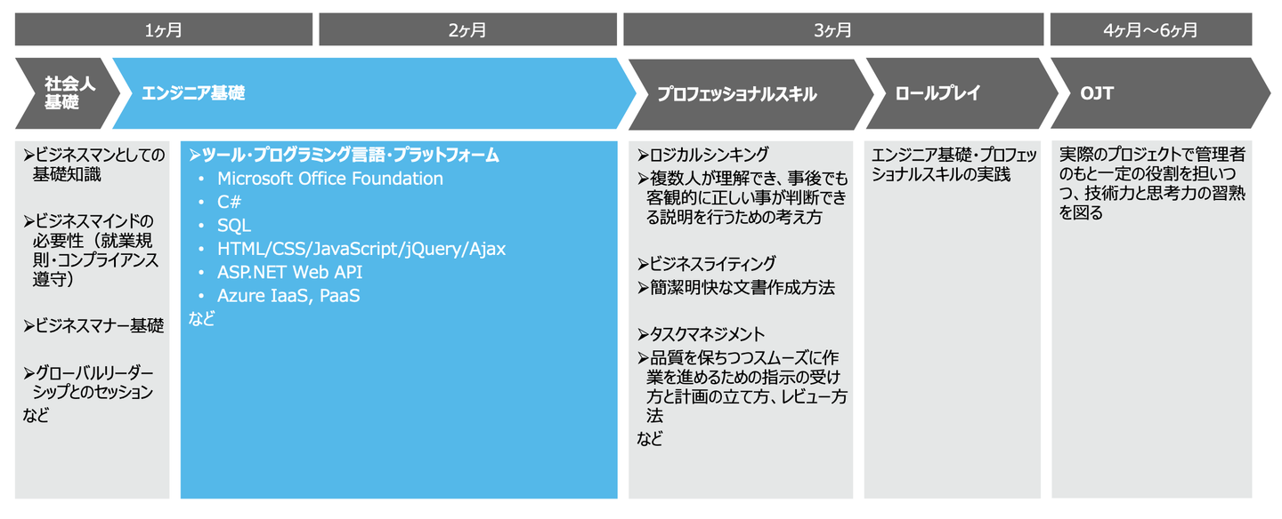清水:アバナードはマイクロソフト技術に特化した企業ですから、マイクロソフトテクノロジーを活用する上で必要とされるエンジニア基礎技術を学んでいきます。