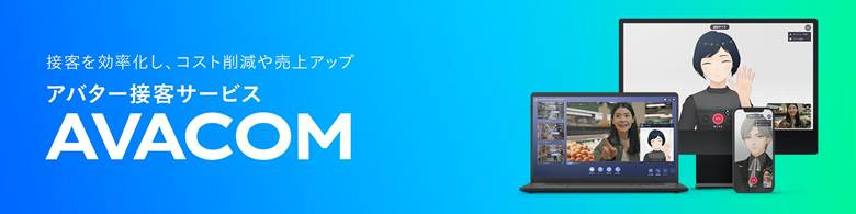 「AVACOM」は、AVITAが提供するアバターや生成AIなどのAI技術によって接客を効率化するオンライン接客サービスです。マルチプラットフォームに対応しており、AIの活用やリモート接客(遠隔接客)により、WEBサイト上でのオンライン接客による売上・契約増加や、問い合わせ効率の向上、店舗や受付の無人化・省人化、人手不足の解消に貢献します。