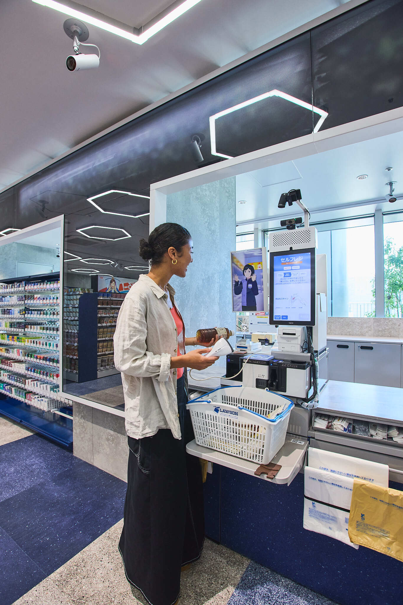 これまで一部ローソン店舗でも導入されてきた”アバター店員”が、今回新たに3Dディスプレイによって立体的に表示され、セルフレジの利用者をサポートします。