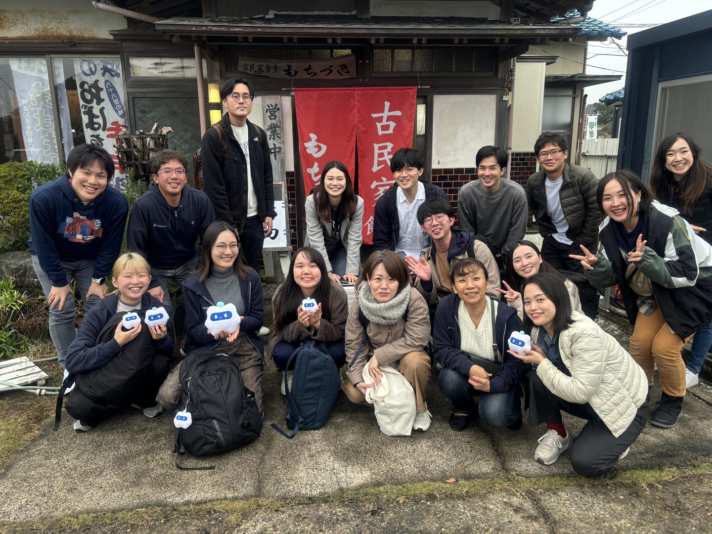 モルック大会を終え、宿を出発して向かったのは、地元の食材を活かした古民家食堂「もちづき」。ここでは、蛤となめろう定食やイワシ定食といった地元ならではの料理を楽しみました。人数が多かったため、この時間はお店をアウェアファイの完全貸切に!