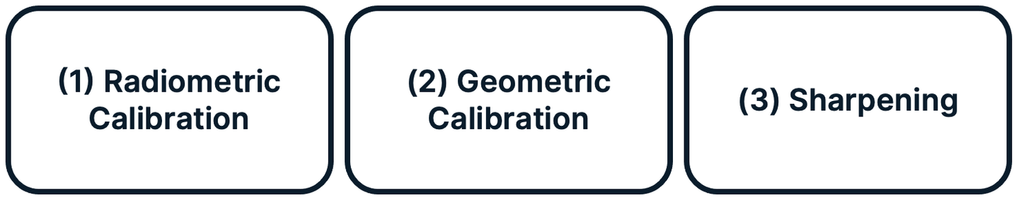 The commonly applied processing pipeline used for optical satellite imagery is consisted of mainly three steps: