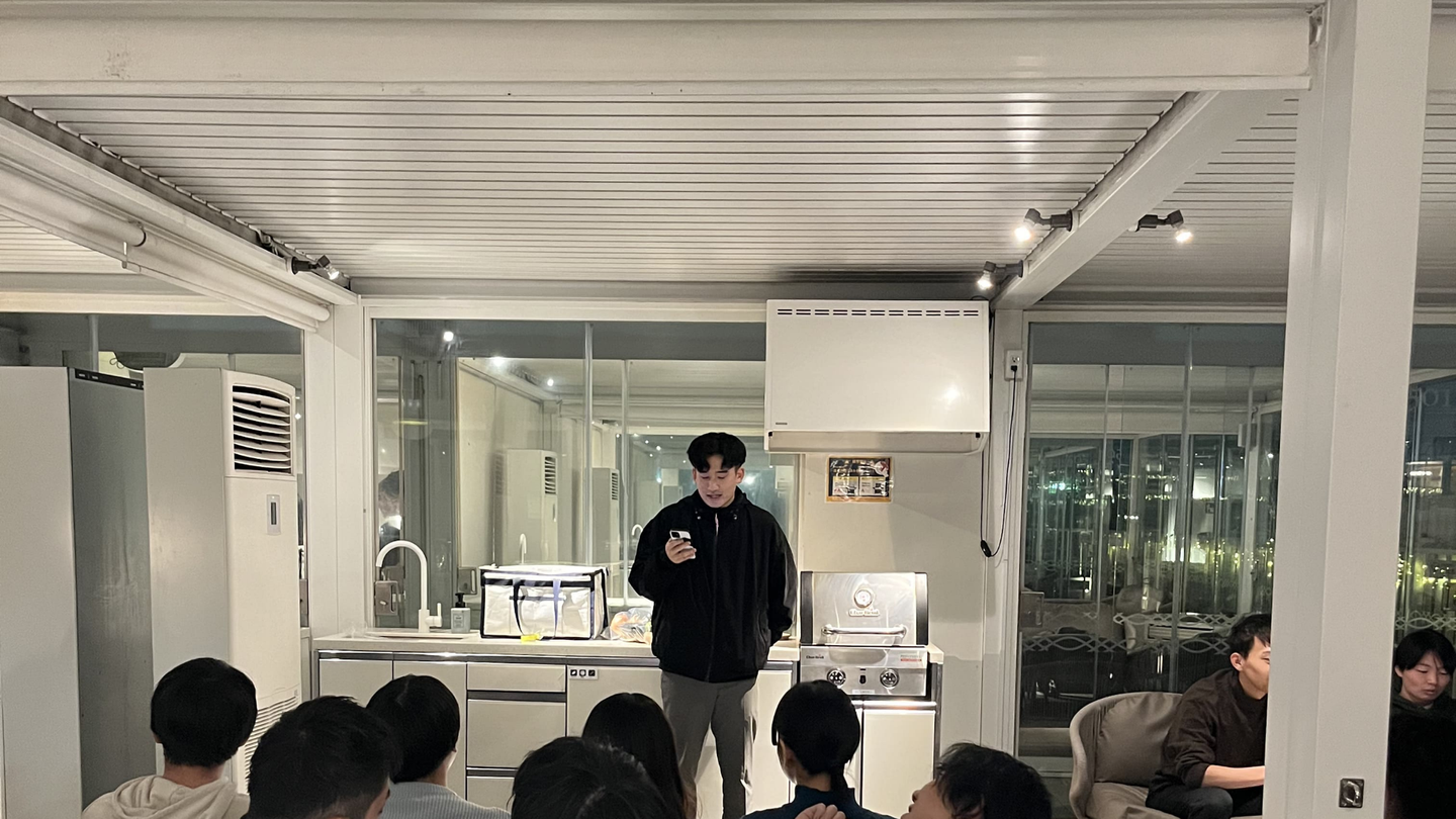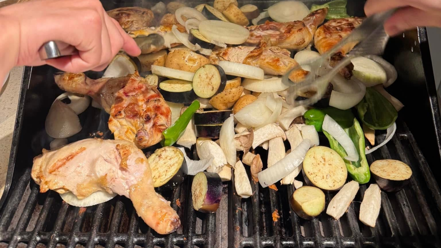屋内にて行うBBQは暖かくも、少し煙かったのがいい思い出です。笑