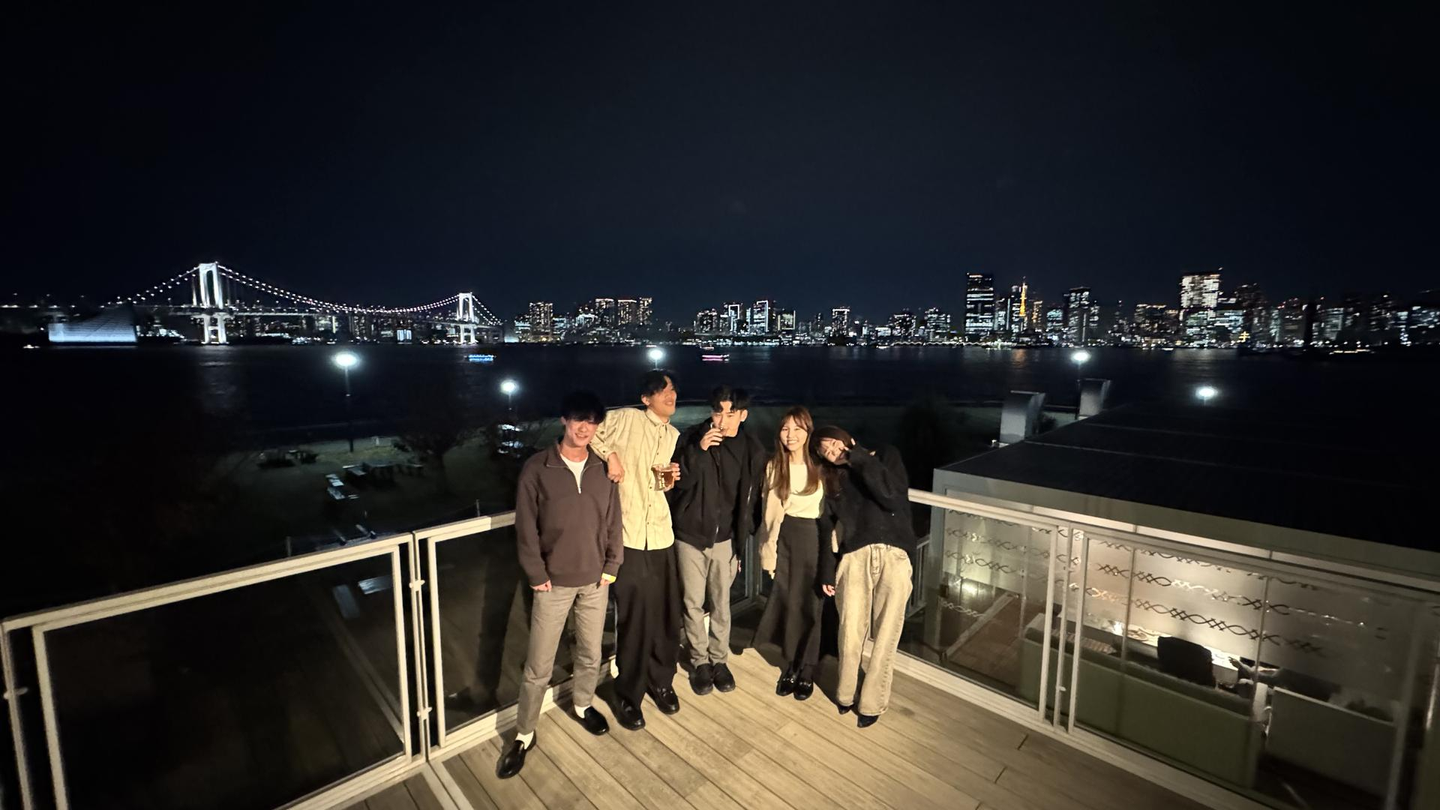 しばし歓談のお時間です〜🎵夜景も綺麗なロケーションで23新卒の皆で記念撮影。