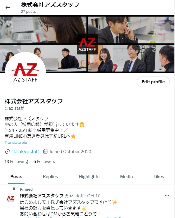 こんにちは!採用戦略室の斉藤です('ω')✨本日のストーリーでは弊社で運用しているSNSの『Wantedly』『Instagram』『X(旧Twitter)』についてご紹介します♪