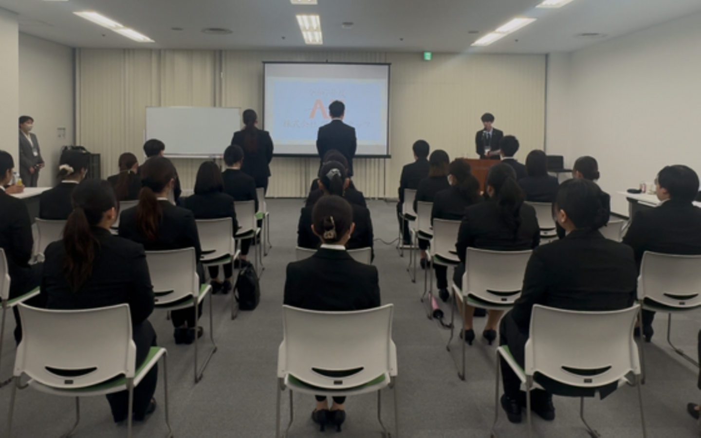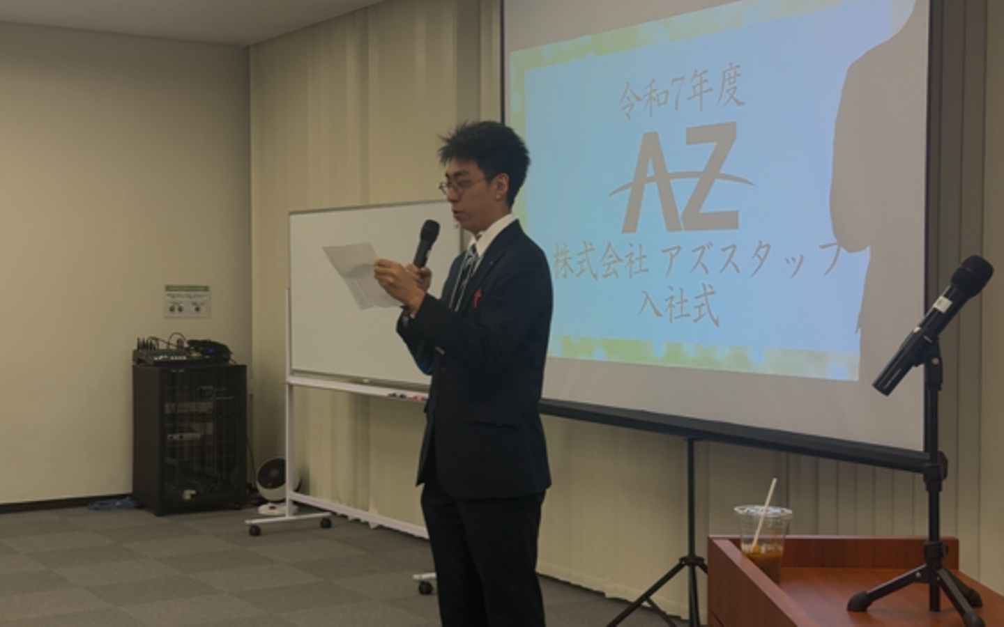 令和7年4月1日、今年は本社ではなく会場をお借りして入社式が行われました\(^o^)/(会社の会議室では入りきらない!感謝!)