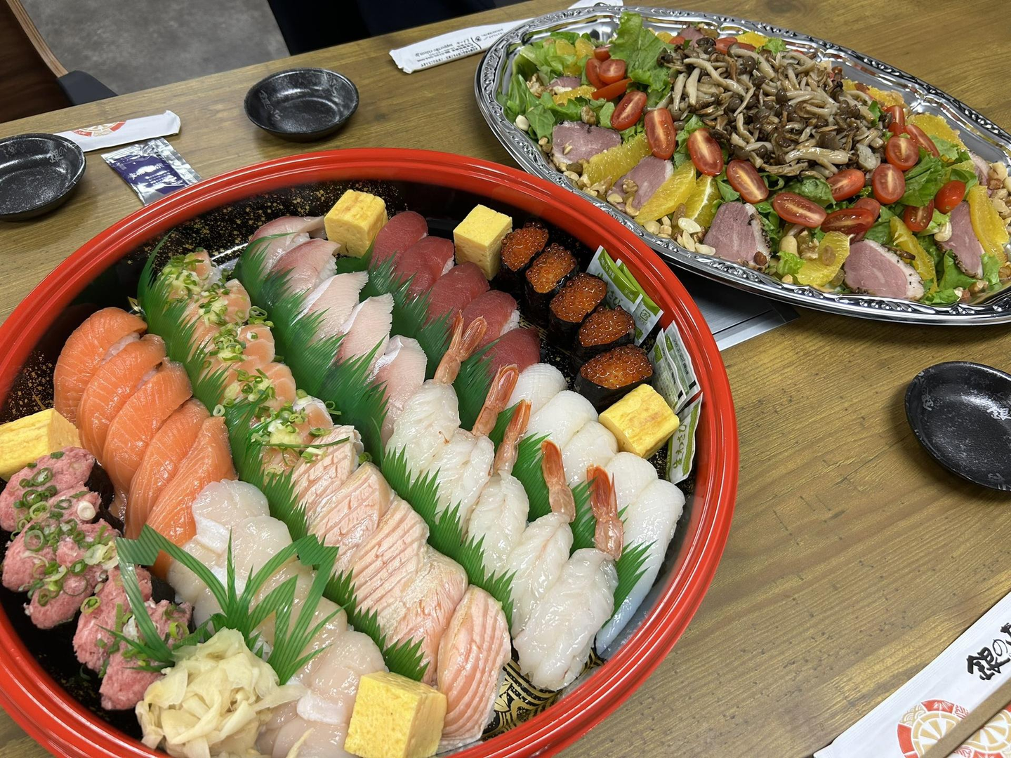 イベントはお寿司やサラダが並べられた各テーブルで始まり、みんなでワイワイ食事を楽しむことができました!