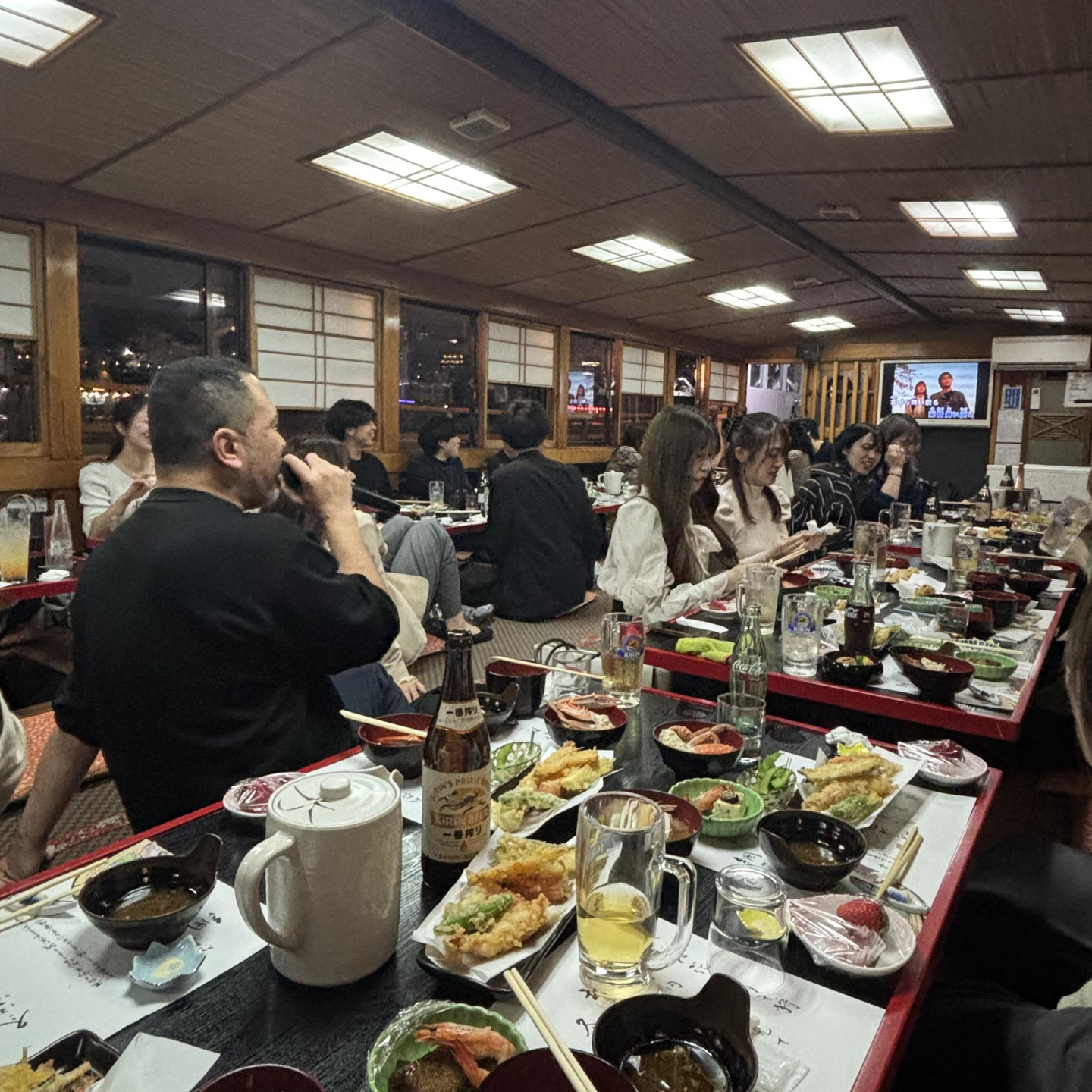 屋形船の中では、飲み放題のドリンクを楽しみながら、みんなで美味しい料理を囲んでリラックスしたひとときを過ごしました。😊