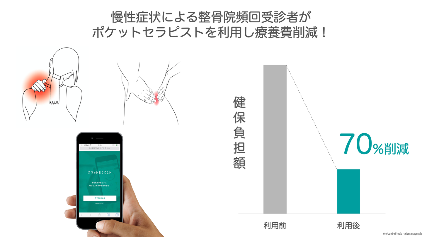 ポケットセラピスト利用により療養費の健保負担額が70%削減!