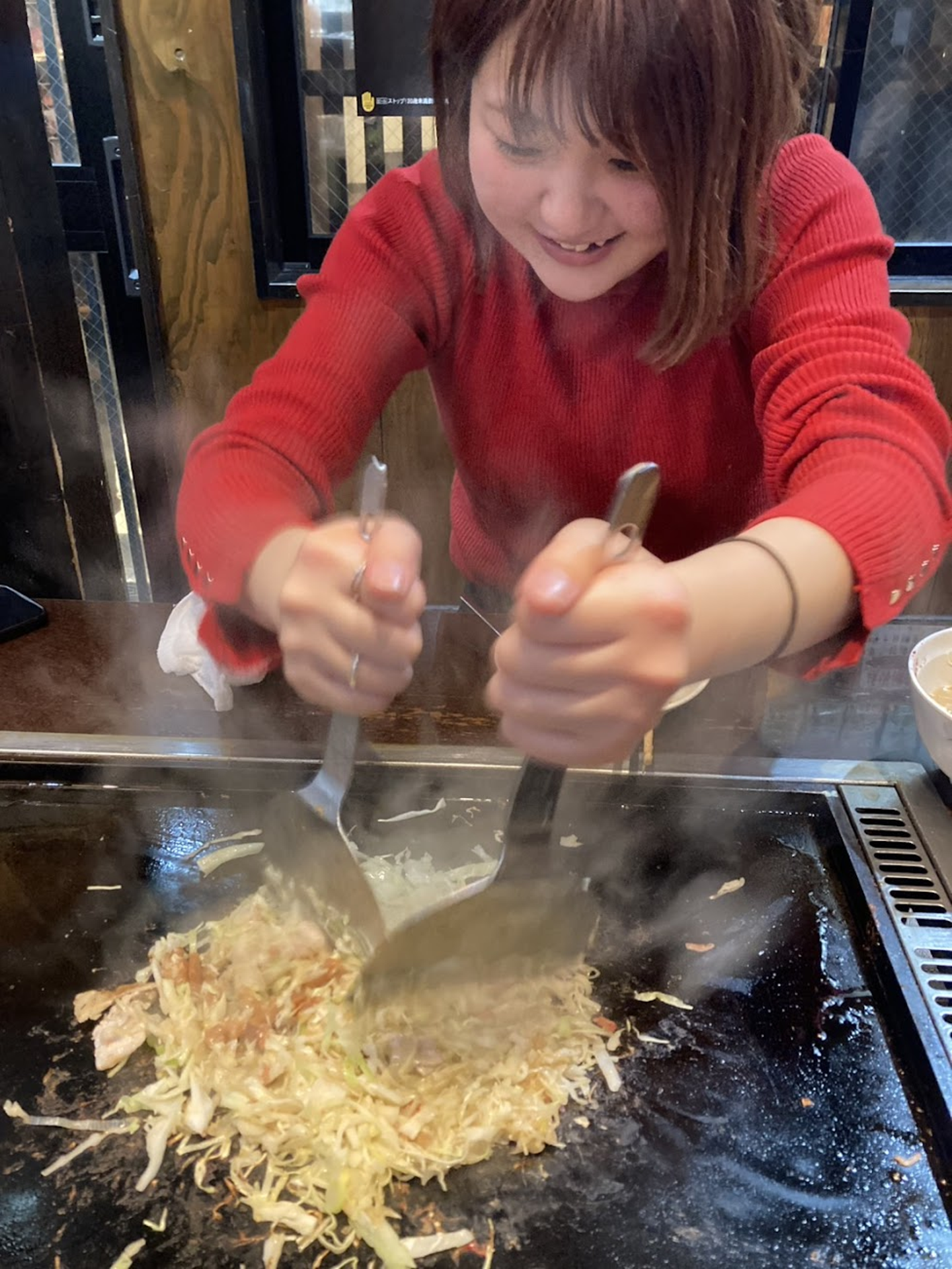 早稲田の後輩が撮ったもんじゃを作る高橋さん