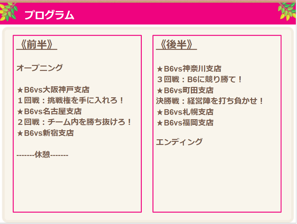 ②執行役VS支店 ▶ B6(6人の執行役員制度)と支店社員との熱いバトル