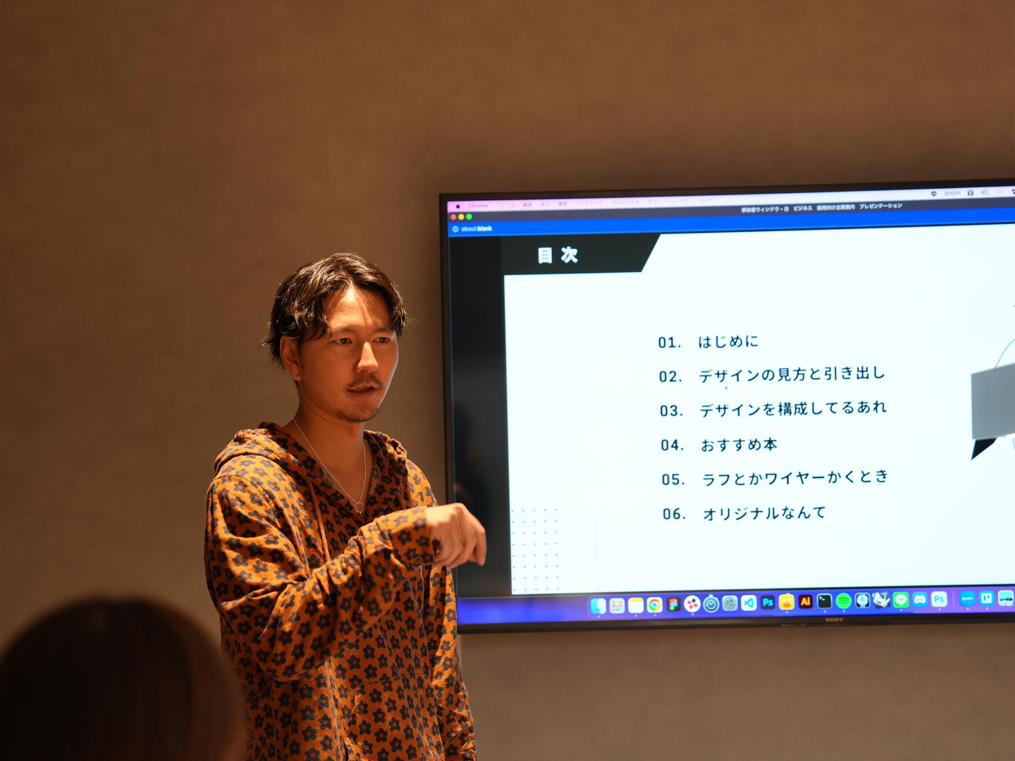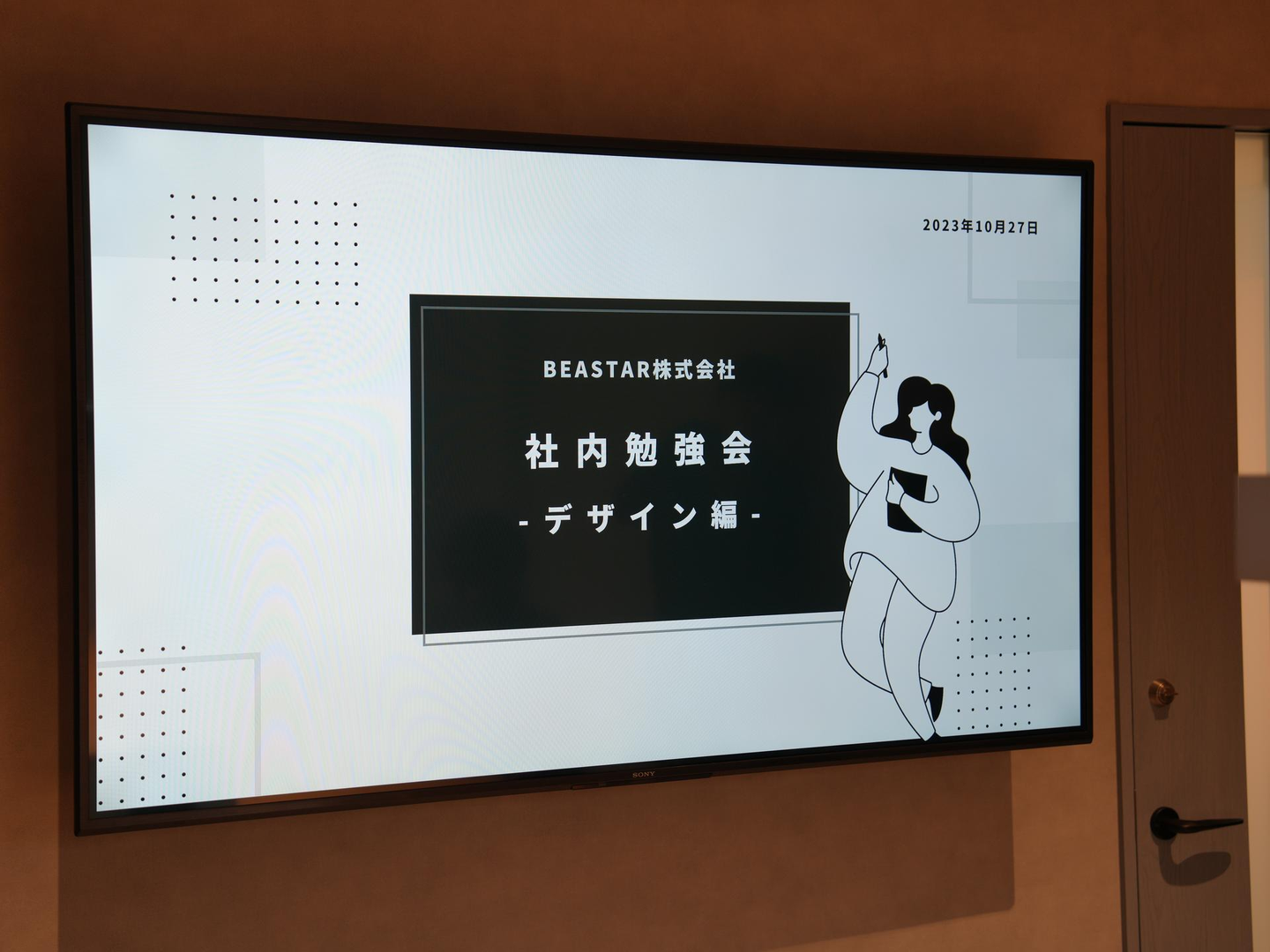デザイナー上原さんからデザインについての勉強会を行っていただきました。デザインの構成や見方、ラフの書き方などについて教えていただきました。BEASTARの勉強会は、社員が自由に開催して、気軽に参加できるイベントになっています。