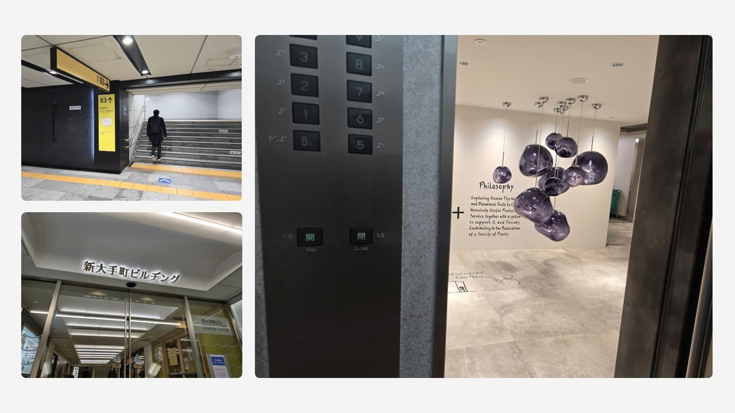 その新大手町ビル10階にビービットのオフィス「UX Square Tokyo」があります。エレベーターから降りると、同じ建物の地下1階や1階とは全く異なる雰囲気の内装になっています。