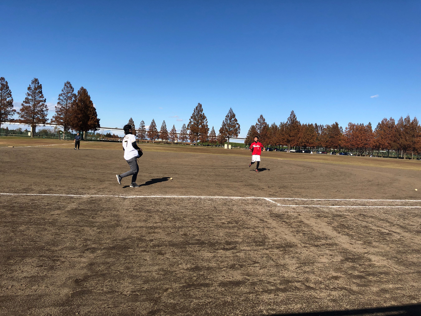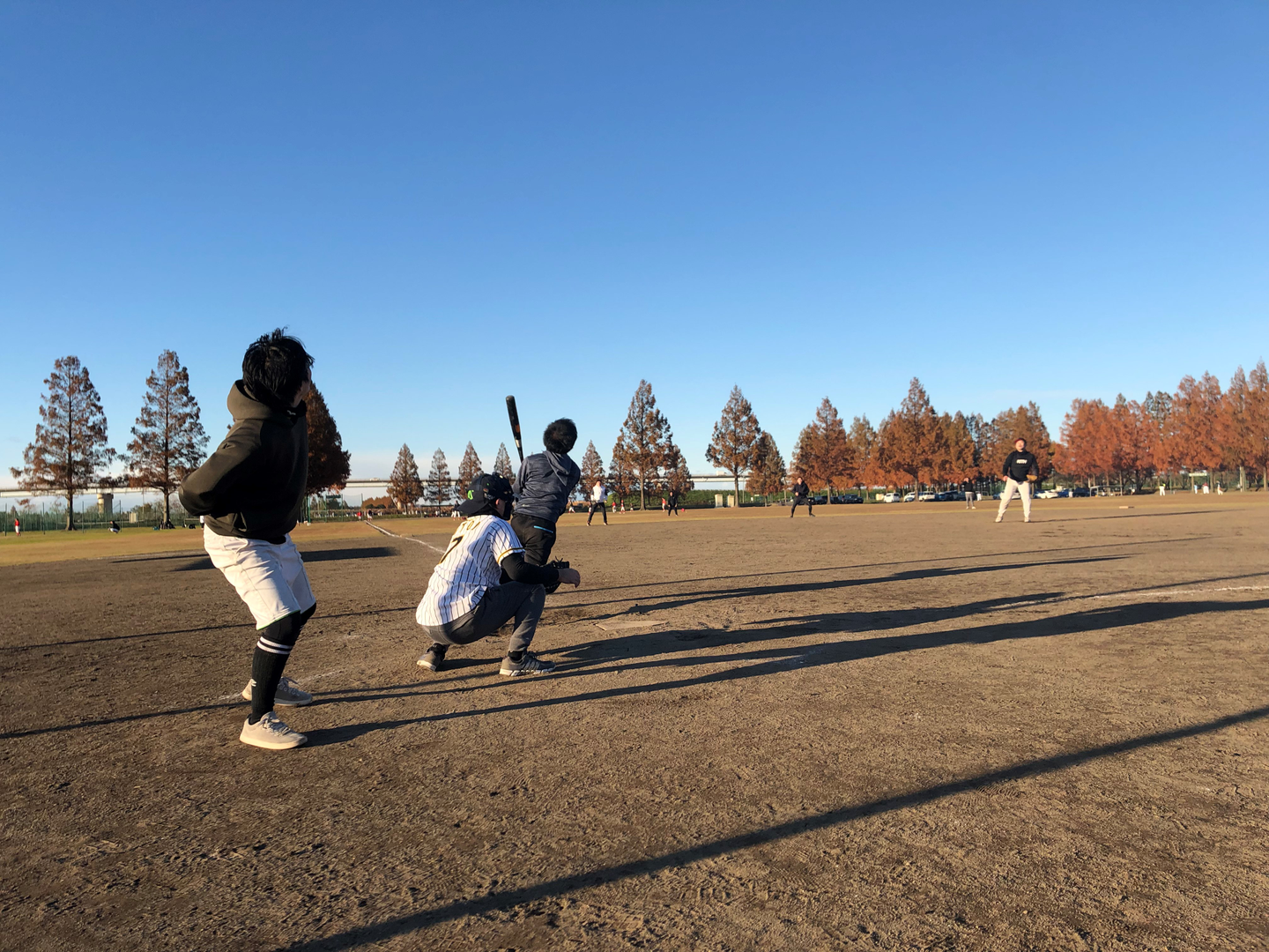 フットサルの翌週は草野球。恐ろしく寒かったので外野の守備はつらいものがありましたが、それでもフットサル同様、社員に加えて、そのご家族やOBで盛り上がりました。