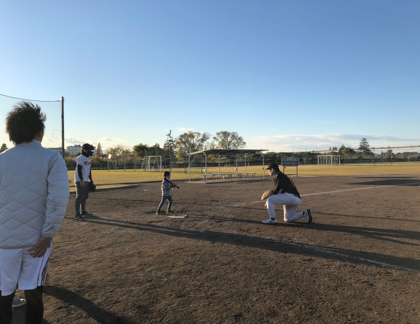 フットサルに続き、草野球でも小さい選手が参加してくれました。打点につながるヒットを打つなど、これは大物の予感・・・・