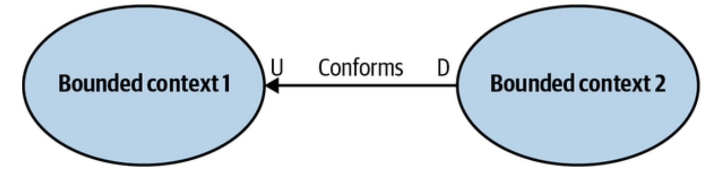 If the downstream team can accept the upstream team’s model, the bounded contexts’ relationship is called conformist.