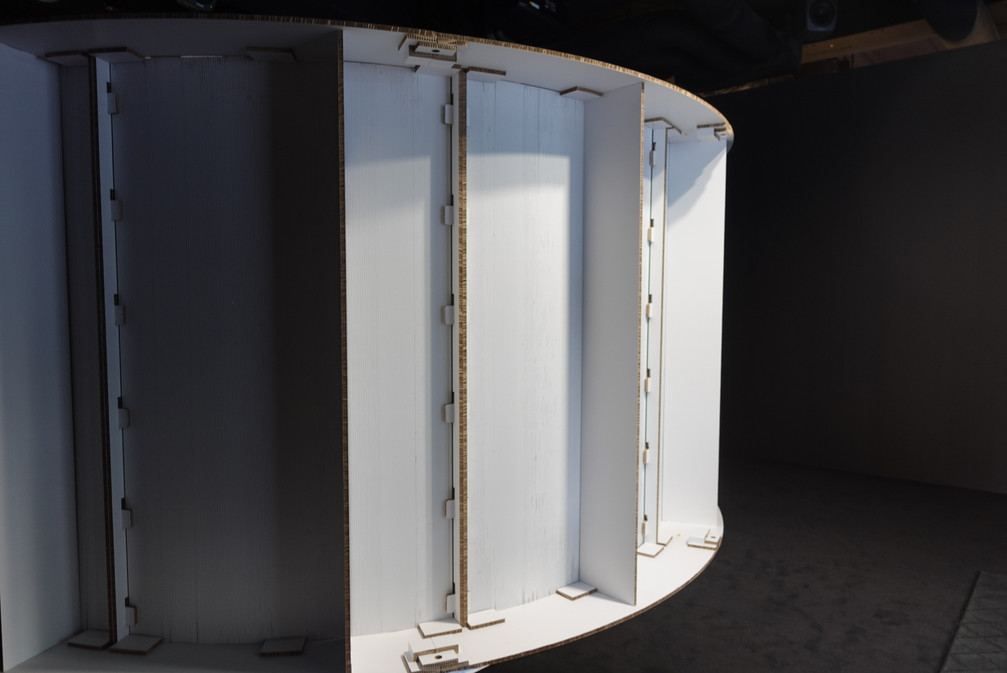 投影されている什器は環境にも配慮し、すべて段ボールで作成。
