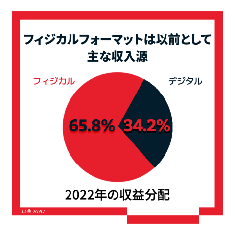 2022年の市場規模が20億ドルを超える*1日本は世界第2位の音楽市場*2であり、この順位は10年以上続いている。ある人はハイテク大国と謳われる日本が、デジタル音楽のパイオニアになることを期待していたかもしれない。しかし、日本レコード協会の報告によれば、2022年の音楽売上高に占めるフィジカルフォーマットの割合は未だ66%である。