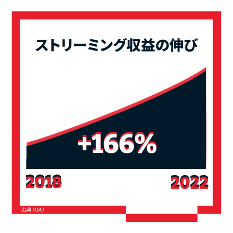 RIAJ*1によれば、2022年、ストリーミング音楽収入は25%増加し、デジタル音楽収入は「2005年の統計開始以来初めて1,000億円を超えた」。