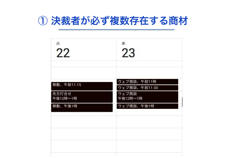そのため、クラウドサインの営業では「営業部門」と「法務部門」など、異なる部門で複数回の商談が発生します。これにより、訪問や移動によるコストがかさみやすく、リードタイムが長くなればなるほど、CAC(1社獲得単価)が高くなってしまうという課題があります。