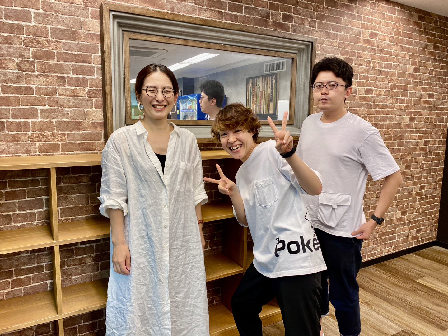 労務チームのメンバー。左から後沢さん、竹内さん、牛込さん(9月に1名増えました)。竹内さんのTシャツはもちろんポケモンTシャツ。