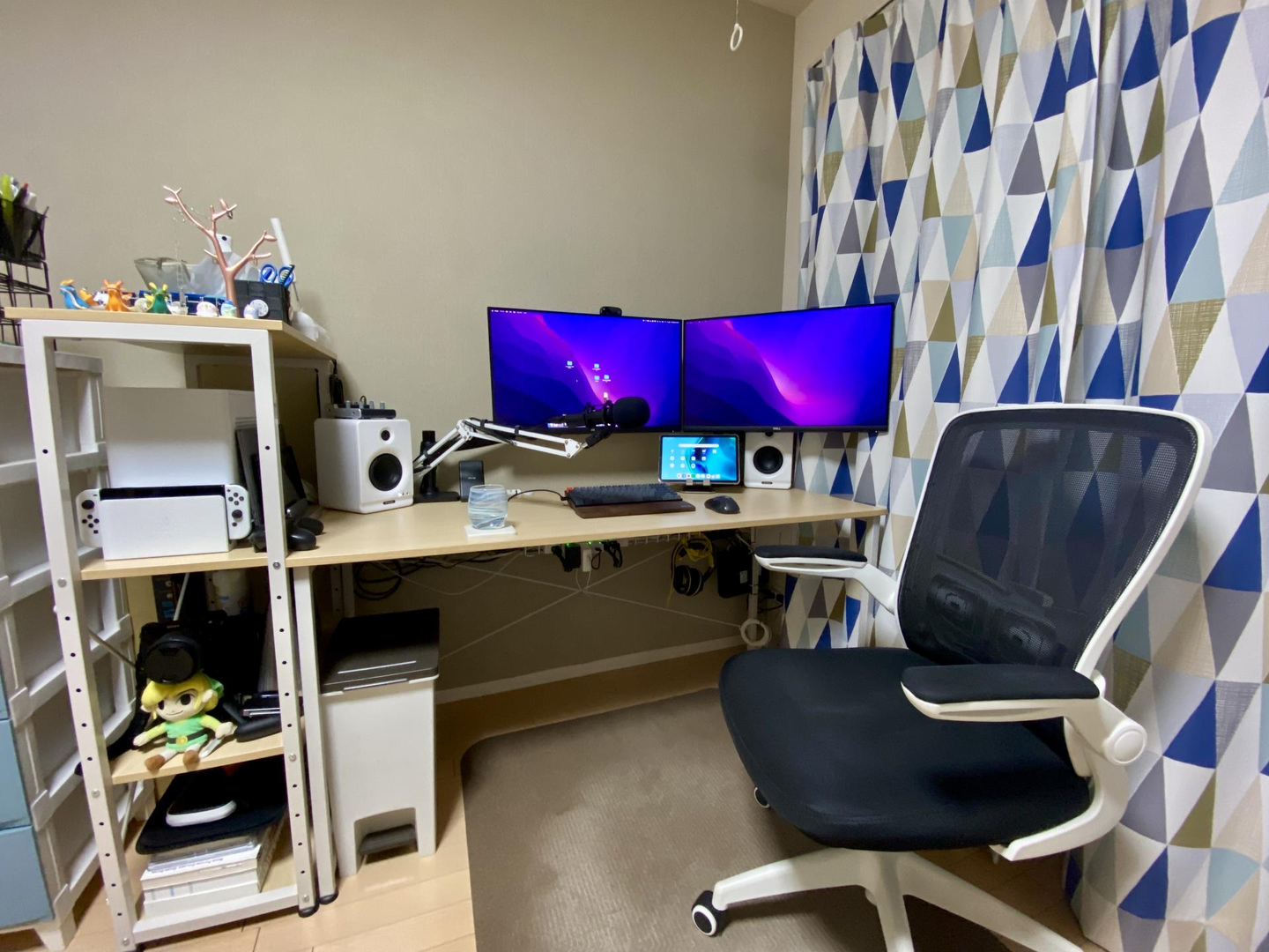 リモートワークが当分終わらない状況になってしまったので、必要経費と言い訳をして機材を整えていたらいつのまにかこのような構成になっていました。最近ではワークスペースいじりが趣味になりつつあります。